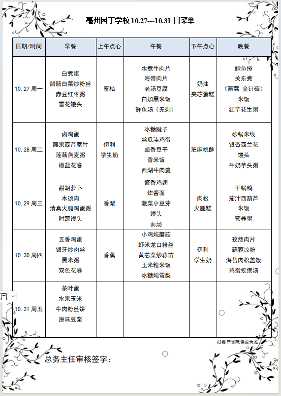 亳州園丁學(xué)校10.27---10.31日菜單